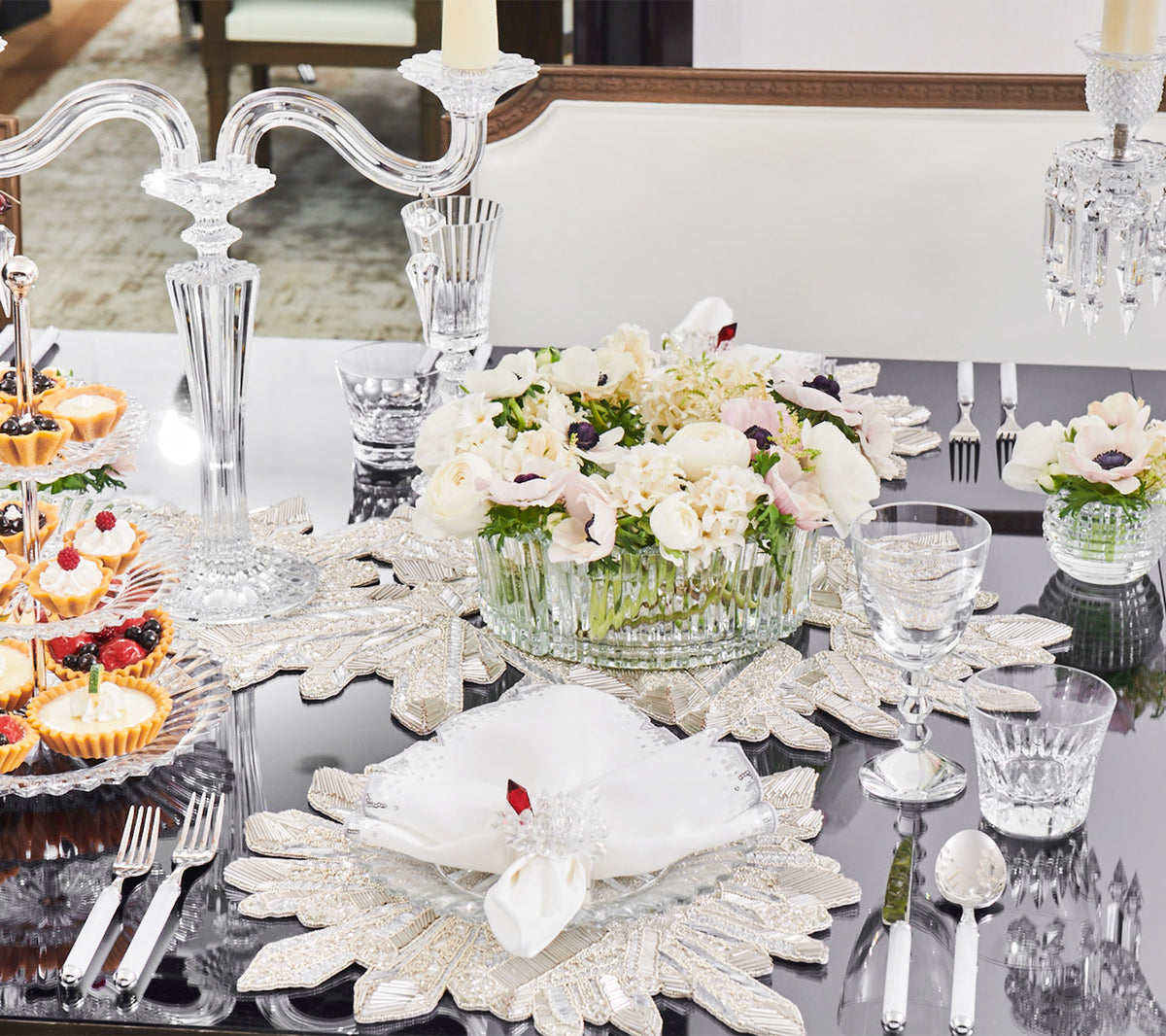 Iconic French luxury brand Baccarat teamed up with world-renowned tabletop designer Kim Seybert to fuse Baccarat’s signature style with Kim Seybert’s exquisite techniques.