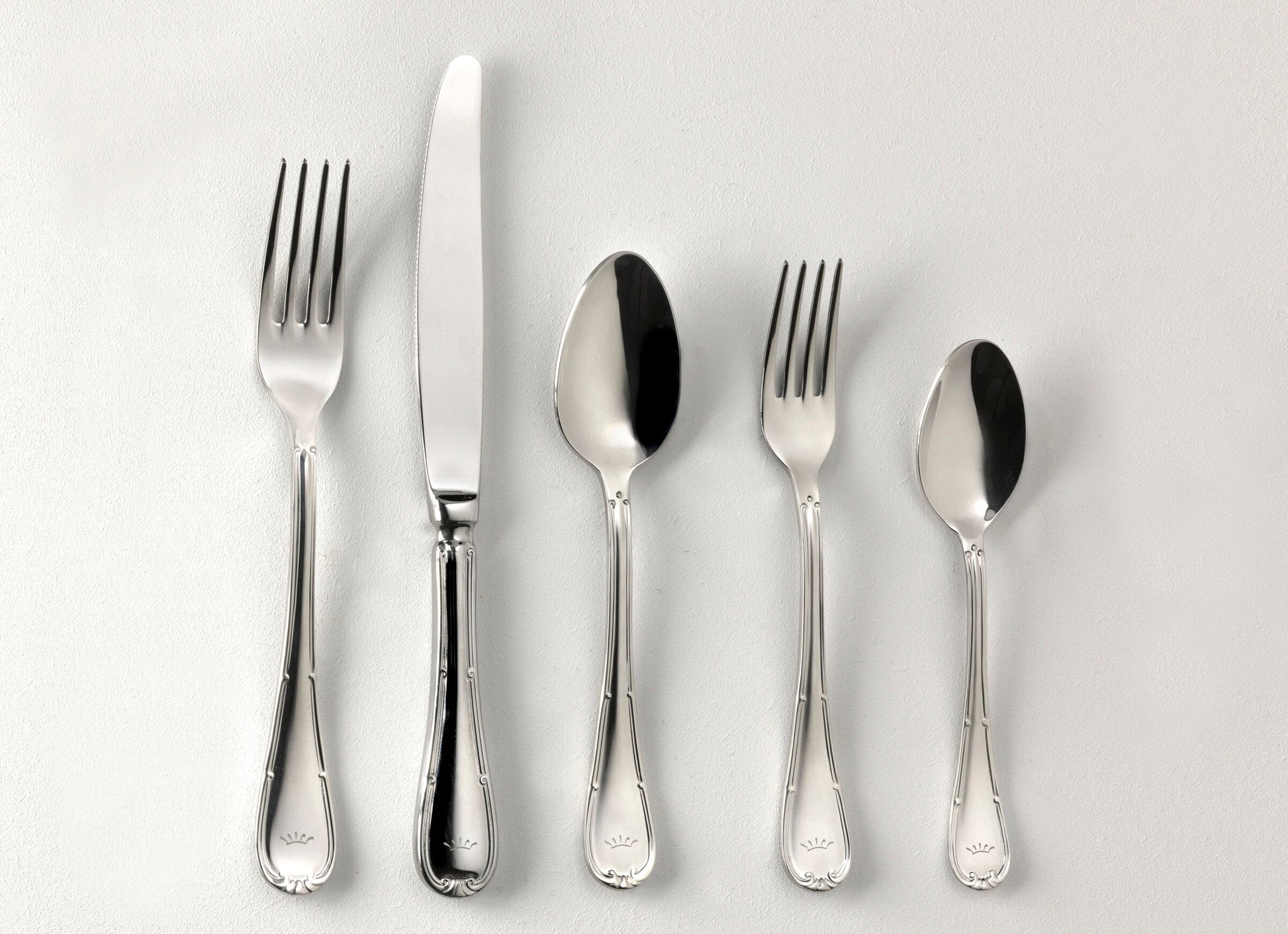 The Ginevra 5-piece cutlery set combines timeless design with functionality. Perfect for accompanying your dishes with timeless style, this design flatware manages to impress thanks to the great simplicity of its combination. The stainless steel cutlery set, finished with a high-gloss mirror polishing, is made by combining the great Italian manufacturing tradition with innovative techniques to ensure quality and durability. This 5-piece set includes a table knife and fork, a dessert spoon and fork and a coffee spoon. Essential elegance: this is Ginevra, the new Ginori 1735 cutlery collection. The table setting conveys balance thanks to the soft lines of this cutlery set, which manages to be essential without losing its refined soul. A dinner with old friends, a family luncheon and an everyday breakfast have one thing in common: the Ginevra cutlery set.