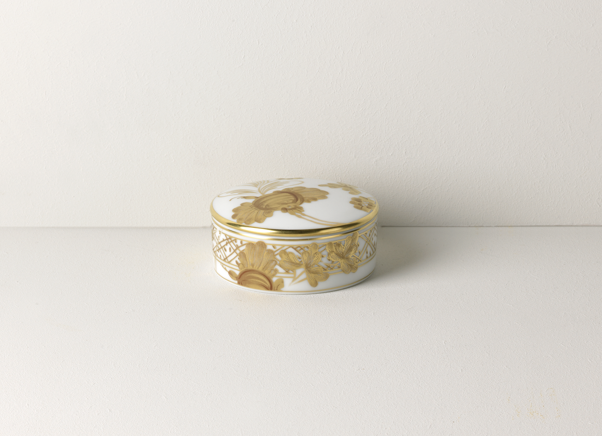 Aurum Scented Stone Box in pure porcelain and pure gold from the Oriente Italiano Gold collection.