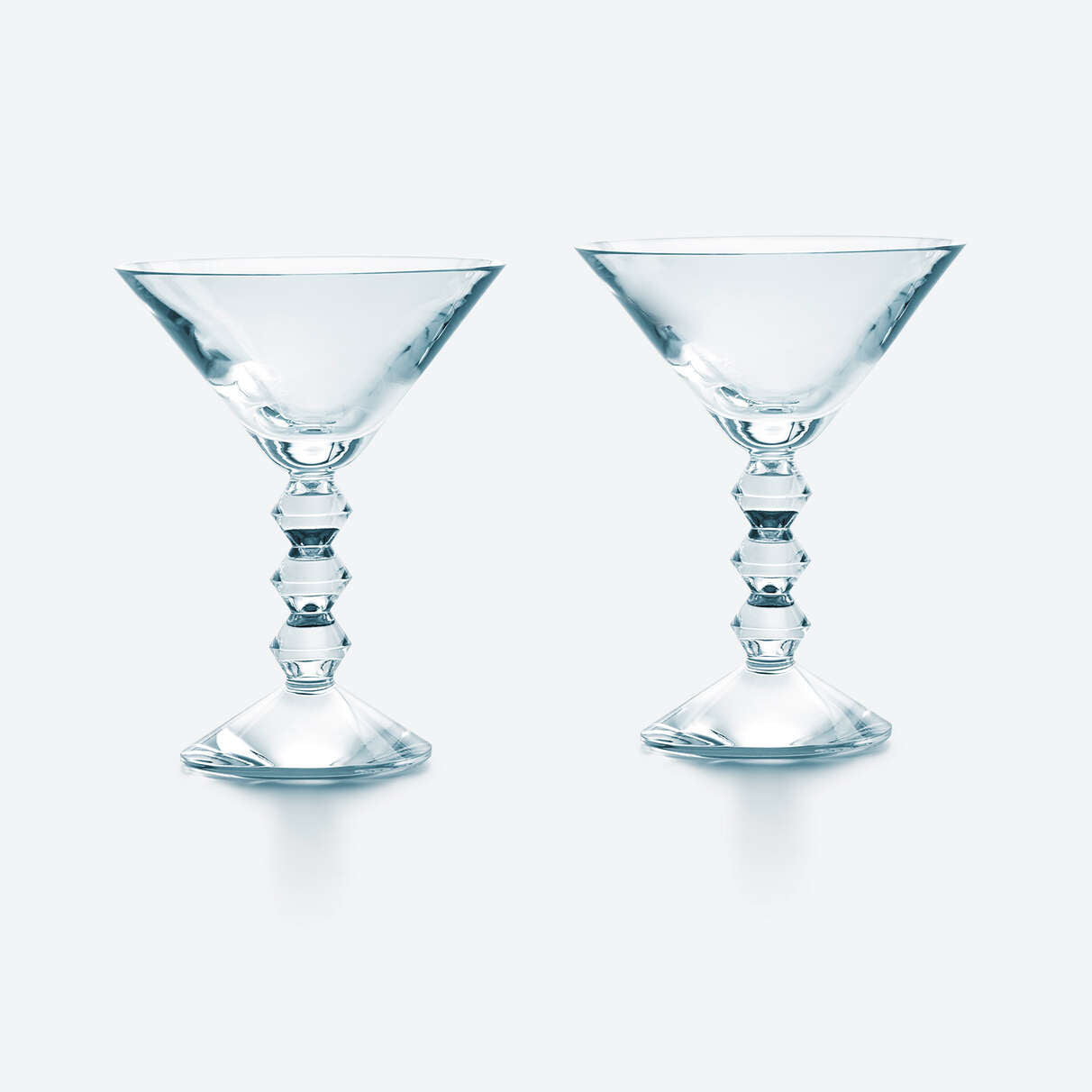 The perfect glass set for the perfect dry martinis at home. Invite your friends and enjoy ! The geometric stem is eye-catching, a stack of three diabolo shaped Baccarat crystal pieces resembling exquisite beads strung together or Brancusi's geometric totems.Iconic lineage.