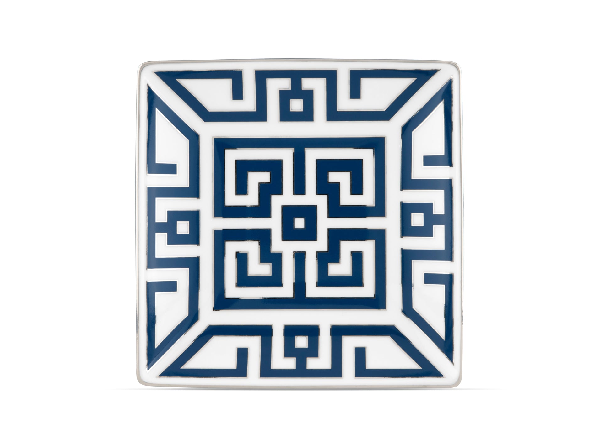 Square change tray in porcelain with blue decoration and platinum. Labirinto collection by Gio Ponti.