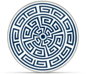 The two bread plates are characterised by fine white porcelain with a geometric sapphire blue decoration, embellished with platinum fillet that gives brightness and prestige to the design. The Impero shape, iconic of the Florentine manufacturer, defines the classic and essential lines while the decoration evokes an imaginary labyrinth that’s ready to welcome any fragrant course. Contemporary and Italian craftsmanship, the collection was originally conceived by the creative flair of Gio Ponti, and is available in a complete table and tea and coffee set, and in refined furnishing accessories. The different variants, with black, scarlet red, emerald green, and amethyst purple decorations with gold piping, allow you to create original combinations through the intertwining colors and geometries that are always unique.