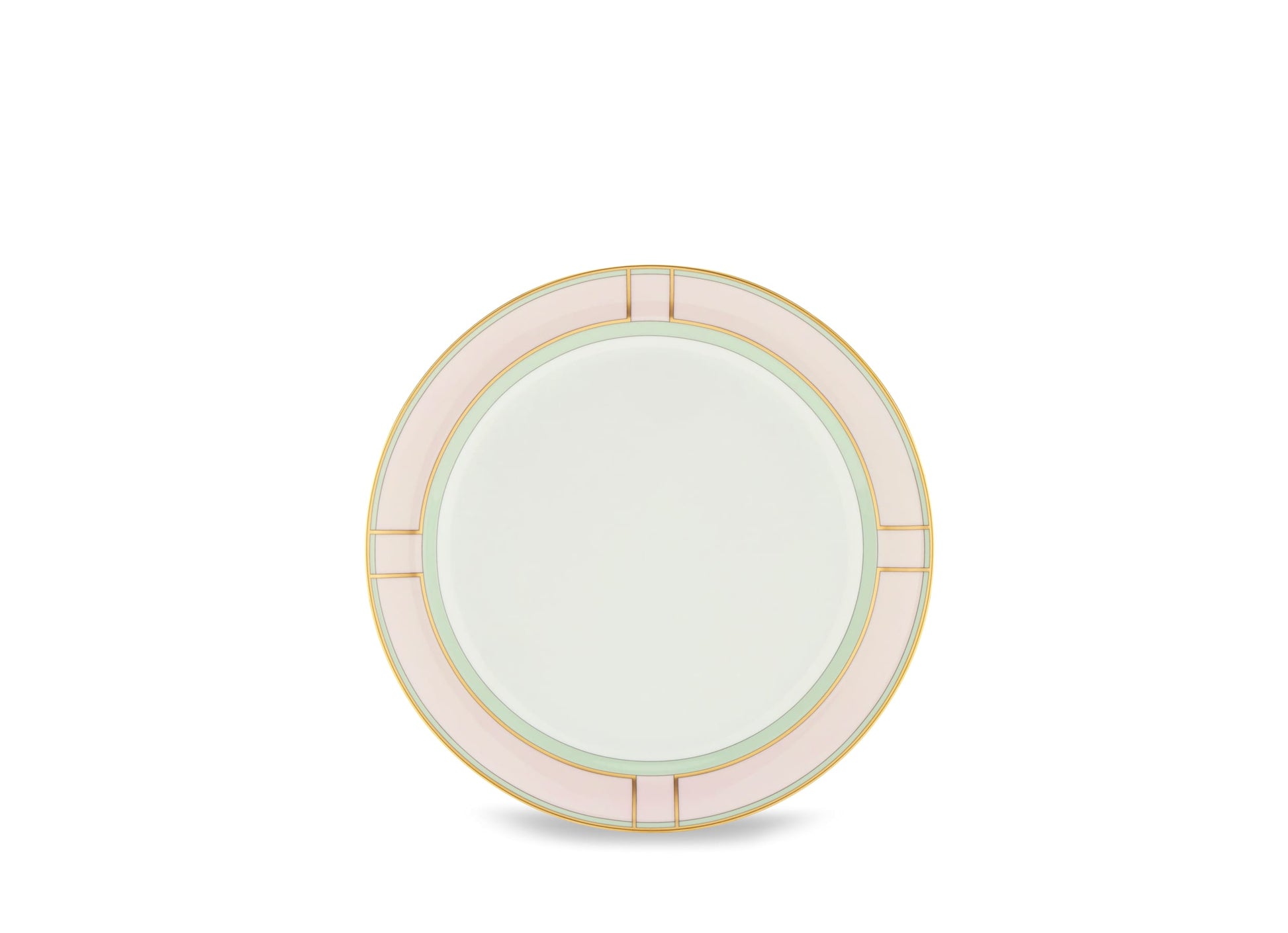 Fine porcelain decorated in pale pink, adorned with a sophisticated green border design and finished with exquisite gold threading. They complement the service alongside soup, bread, and dessert plates from the same line, all of which are available in four pastel colors specifically designed to be mixed and matched. The complete service is outlined by the contours of Colonna, iconic shapes comprising the iconic mid-1950s collection by former Manifattura Artistic Director Giovanni Gariboldi to be stackable and therefore stowable in small spaces. Diva is a porcelain collection available in tableware, tea, and coffee sets as well as an assortment of fine gifts that reflect the glamour of the past with contemporary flair as they take inspiration from the fabled atmosphere of 1950s cinema and the divas who dwelt in the spotlight.