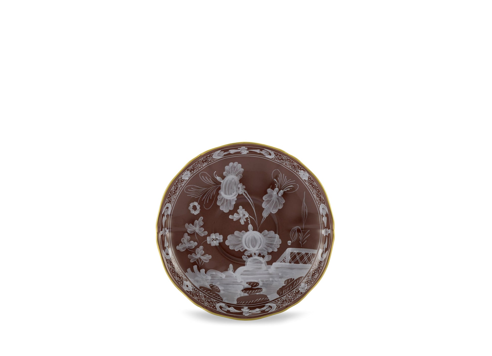 Ginori 1735 Oriente Italiano Tea Saucer - Castagna (Brown w/Gold Threading)