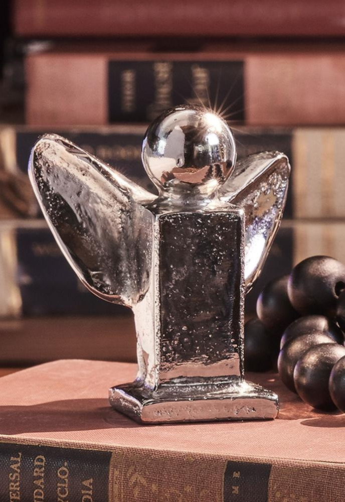 Wax cast angel plated in nickel.
