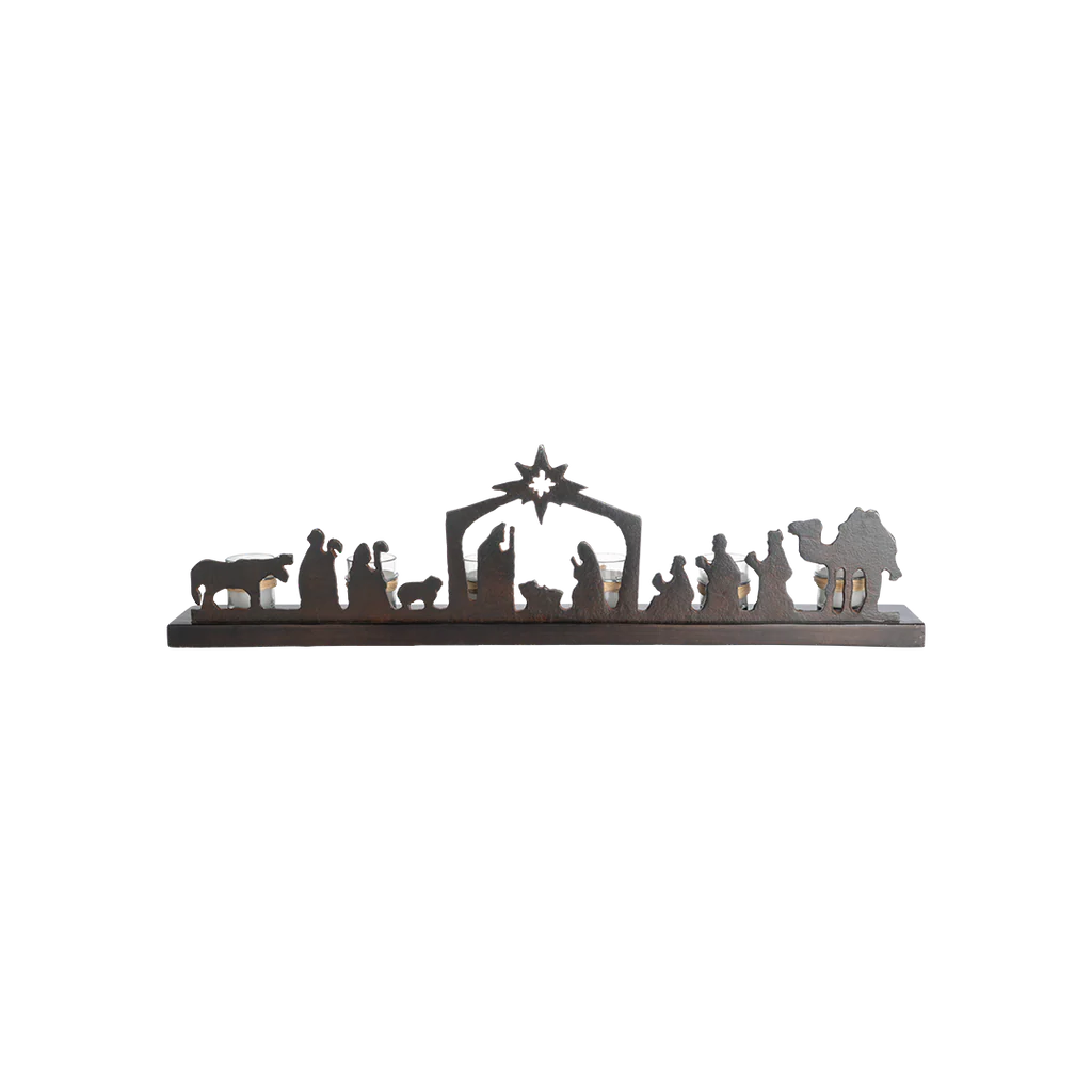 Small iron nativity rail on a removable wood base set with 6 mini Barboglio Adelitas