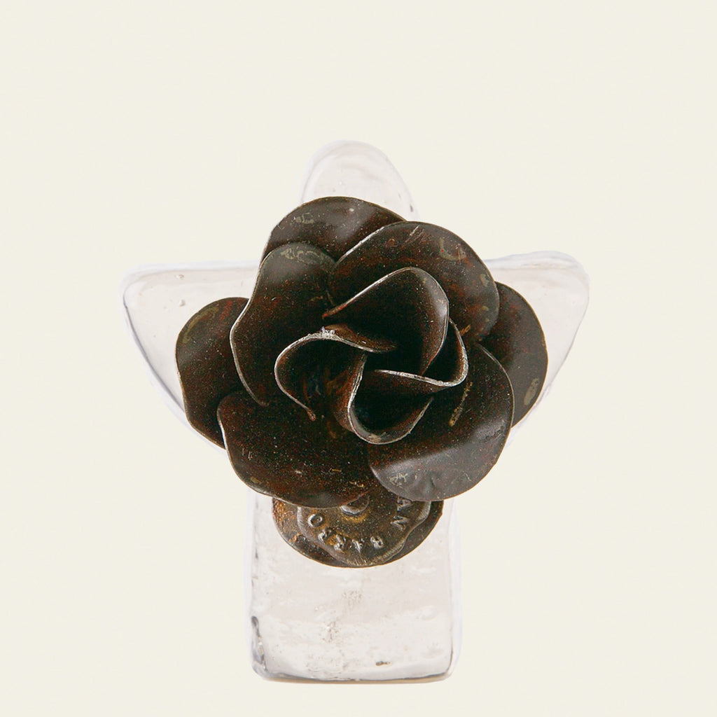 Glass angel blessing with rose.
