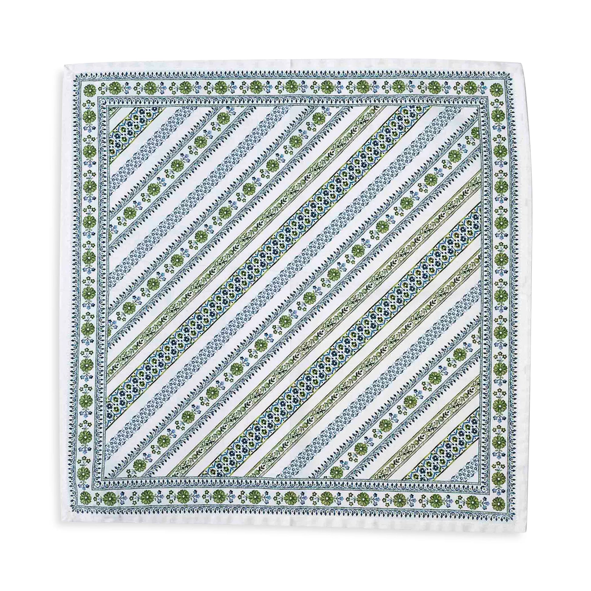 This cotton sateen napkin was inspired by our meanderings through the ancient streets of Seville where we fell in love with the ancient city’s hand-painted tiles, and created this charming striped motif in the refreshing and tranquil colors of the Spanish countryside.