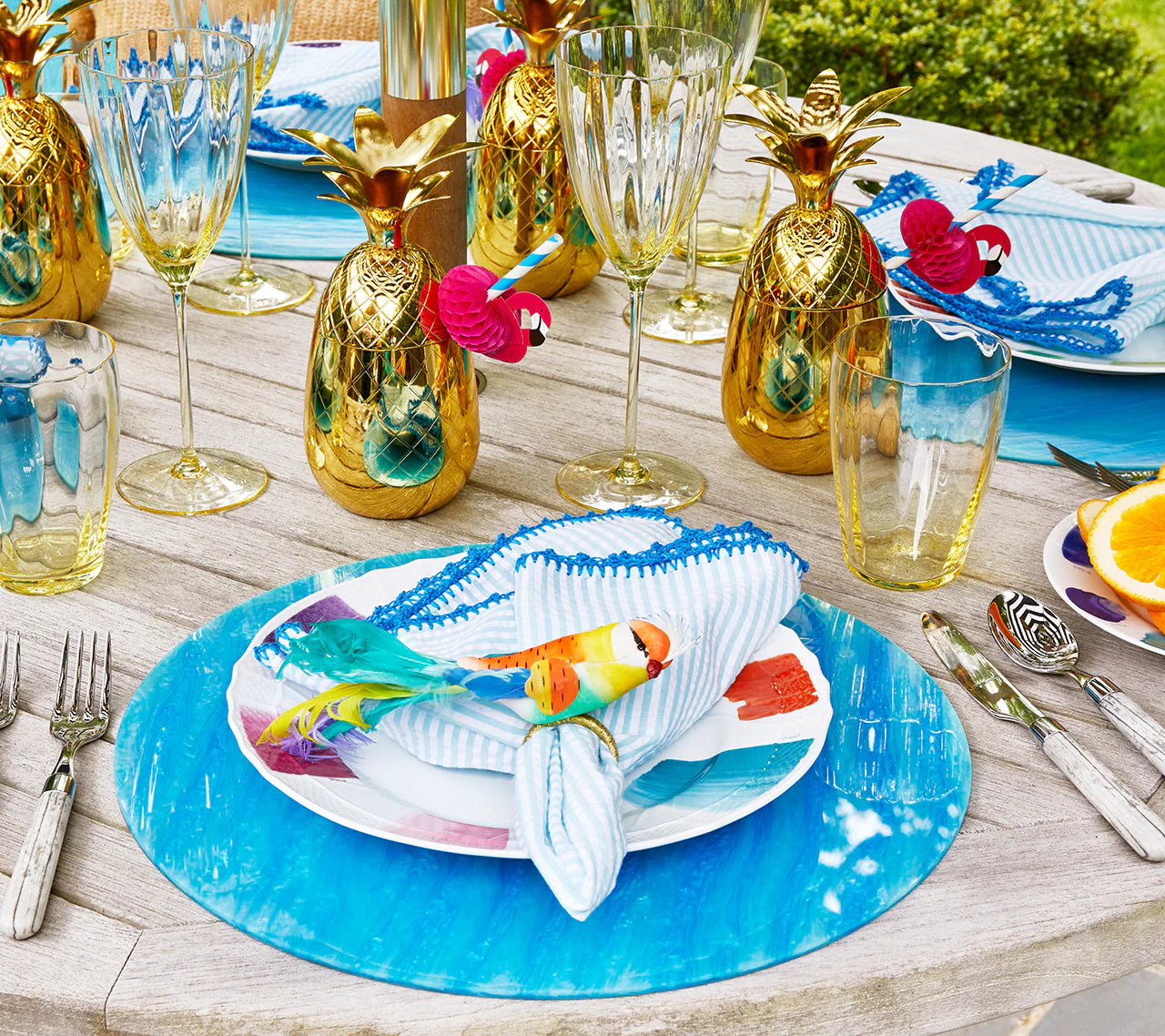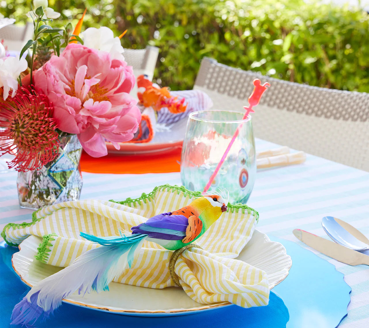 After the success of the Flamingo and Toucan napkin rings, we are introducing the Rio, a colorful feathered parrot. Pair it with an all-white napkin so it truly takes flight.