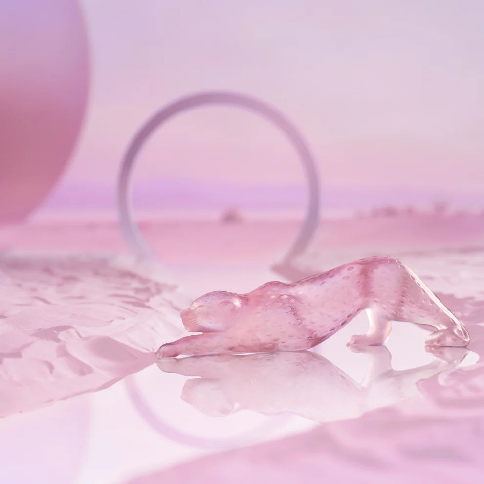 Lalique ZEILA PANTHER LARGE SCULPTURE Pink Lustre