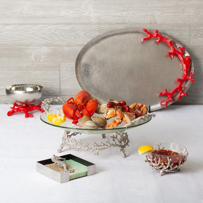 The Ocean Reef Collection is inspired by the bounty and beauty found on the ocean floor. The ocean is symbolic of freedom and limitlessness, and coral represents renewal and strength. Coral reefs are also associated with healing, transformation, and refuge in the face of change.