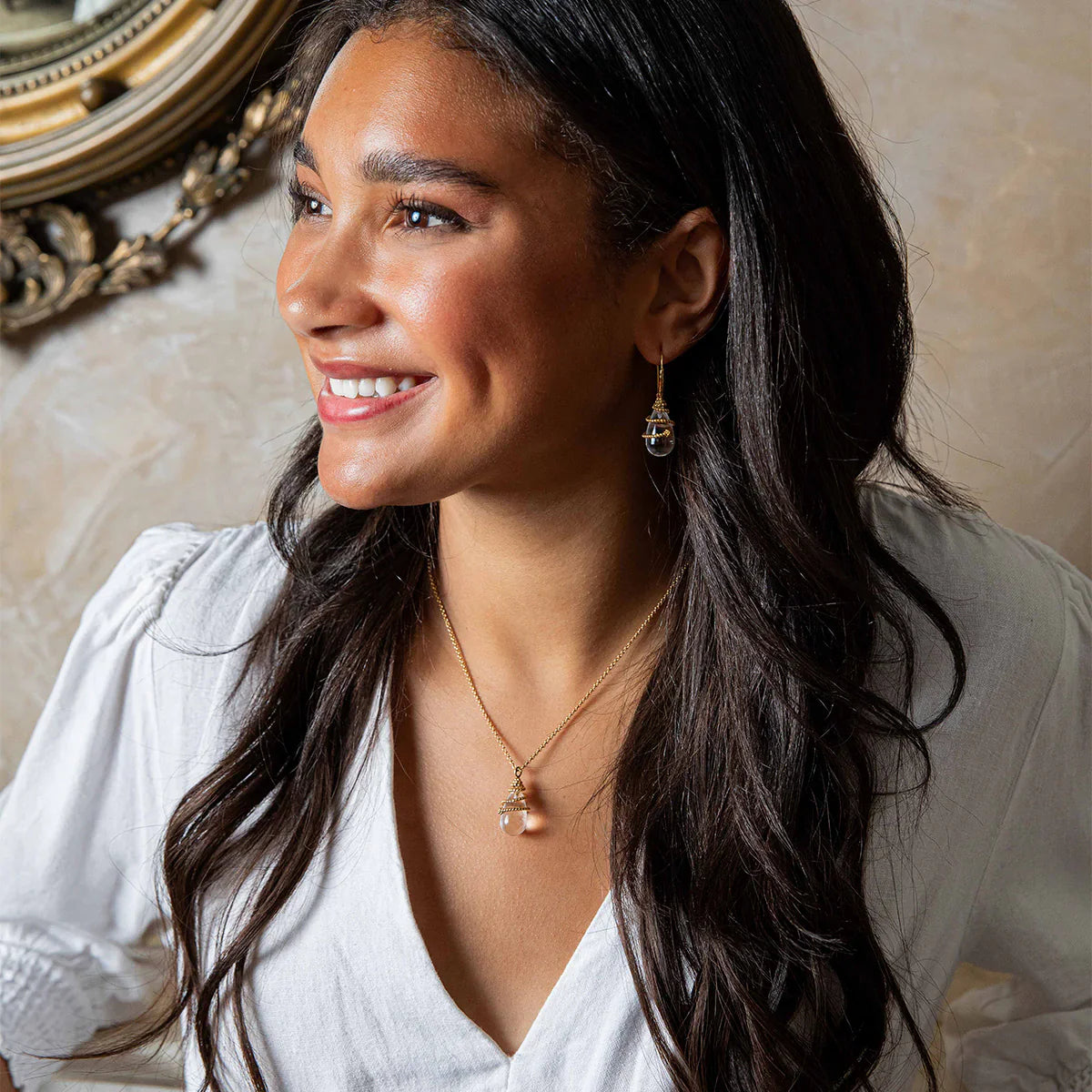 Like a drop of sparkling dew that nourishes everything it touches, even the smallest act of kindness has immeasurable ripple effects. Our dainty chain necklace is embellished by an oversized and luscious dewdrop of natural clear quartz that’s polished to luminescence and enveloped in a dancing swirl of twisting golden thread. Dressed up or down, this elegant necklace never fails to make a subtle statement and goes with practically everything, from workdays to holidays to birthdays—and all the days in between.