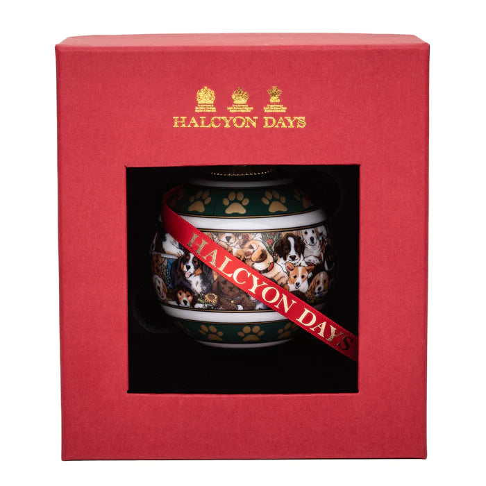 This handcrafted English fine bone china bauble features an adorable design destined to bring playfulness and charm to your tree this Christmas.