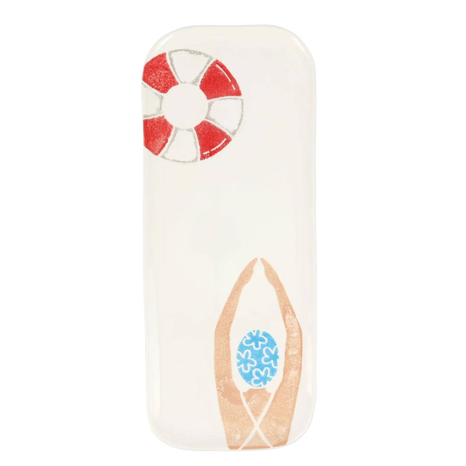 Pure fun, the Riviera Narrow Rectangular Platter celebrates la dolce vita. The collection's assortment of swimsuits, snorkels, flipflops, and sea life capture the joy and warmth of an Italian beach, and they make all of your gatherings feel like a long-awaited and well-deserved vacation.