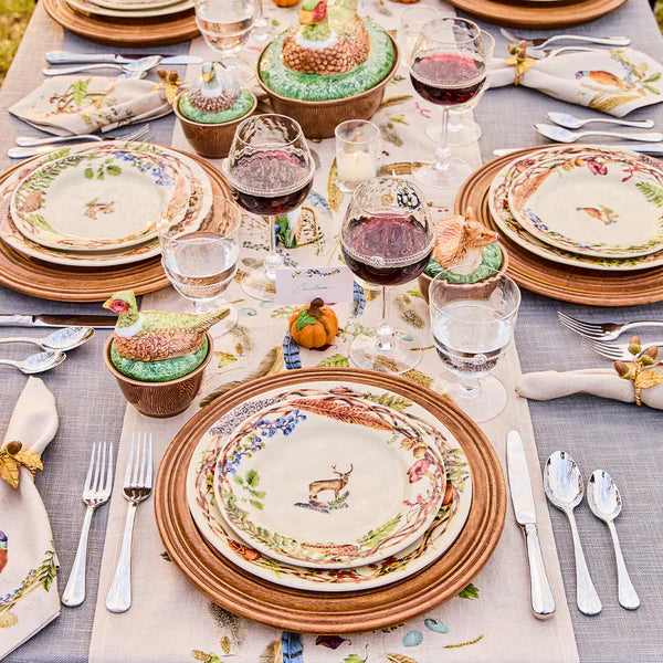 A halo of found treasures from woodland rambles are artfully arranged to frame our stately stag—and whatever salads or desserts you dream up—on this forest-inspired plate that brings a layer of rich color and a touch of seasonal whimsy to table settings.