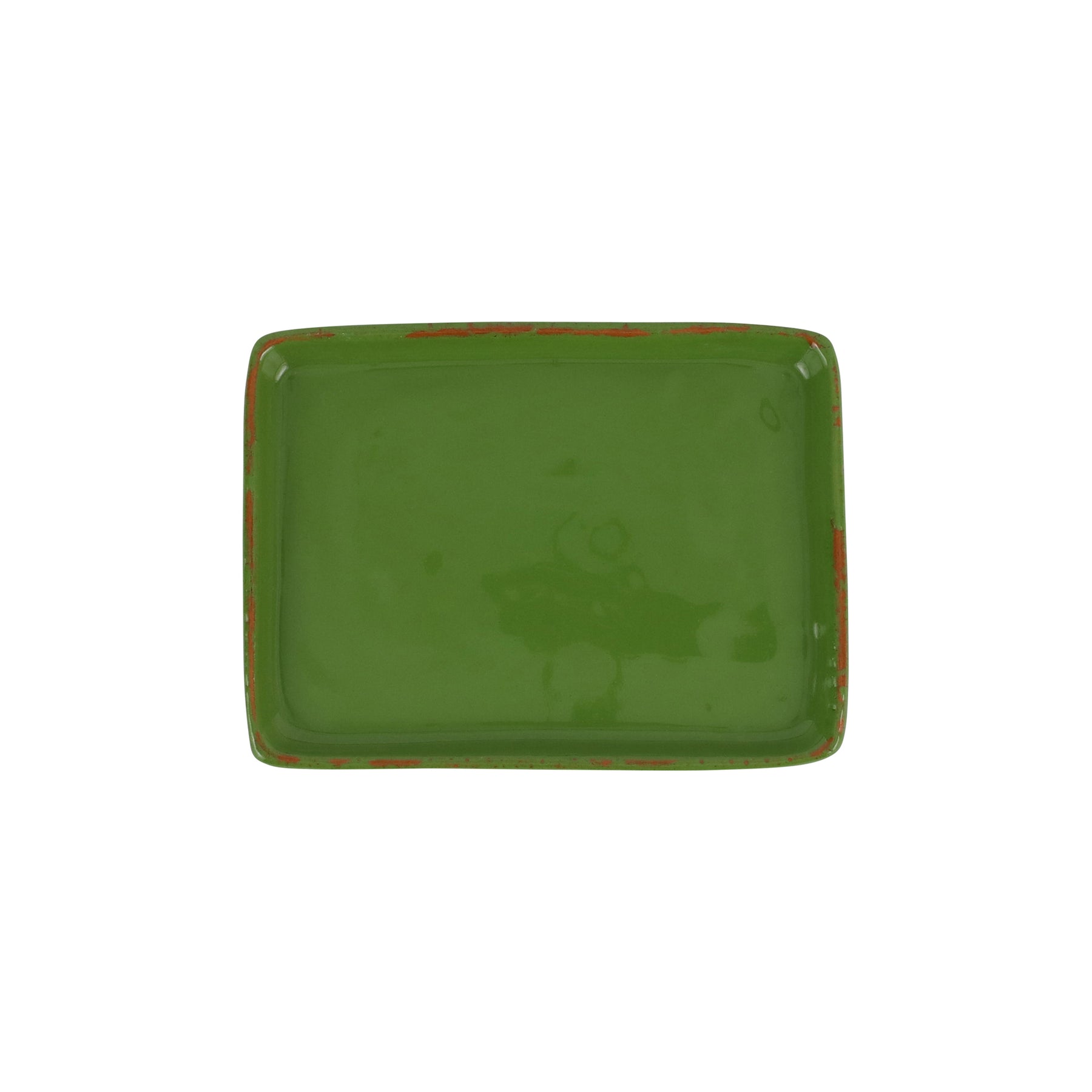 Inspired by the Tuscan landscape, the Cucina Fresca Sage Rectangular Tray calls to mind Tuscany's fresh green trees. The plate's raw terra cotta edges are reminiscent of 14th-century Italian pottery and bring a rustic, handcrafted authenticity to your table.