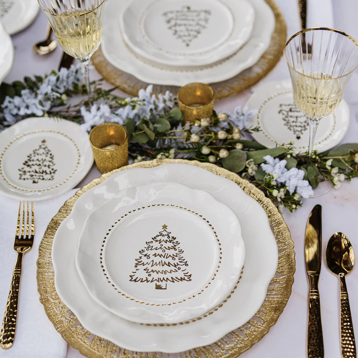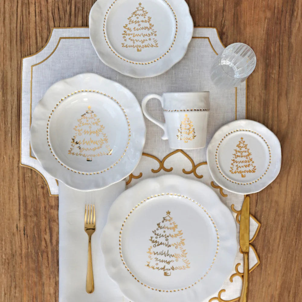 Giorno de Festa translate to a “day of happy events,” and this sophisticated, joyful dinnerware ensures just that. A simple gold tree and wreath adorn each piece, and the result is a timeless sheet collection that you will enjoy every holiday season for decades to come.