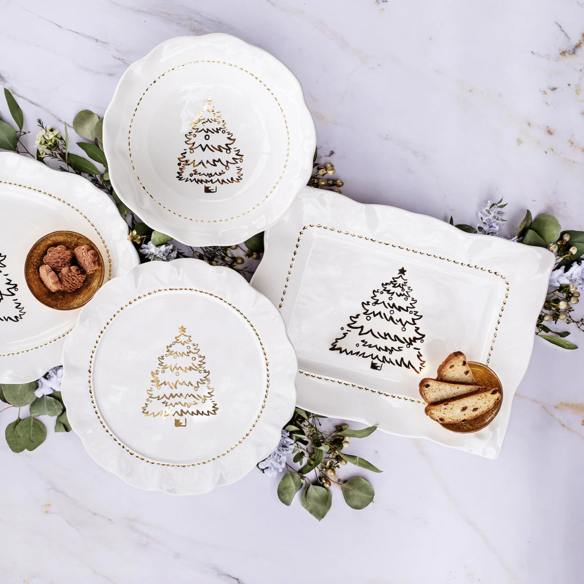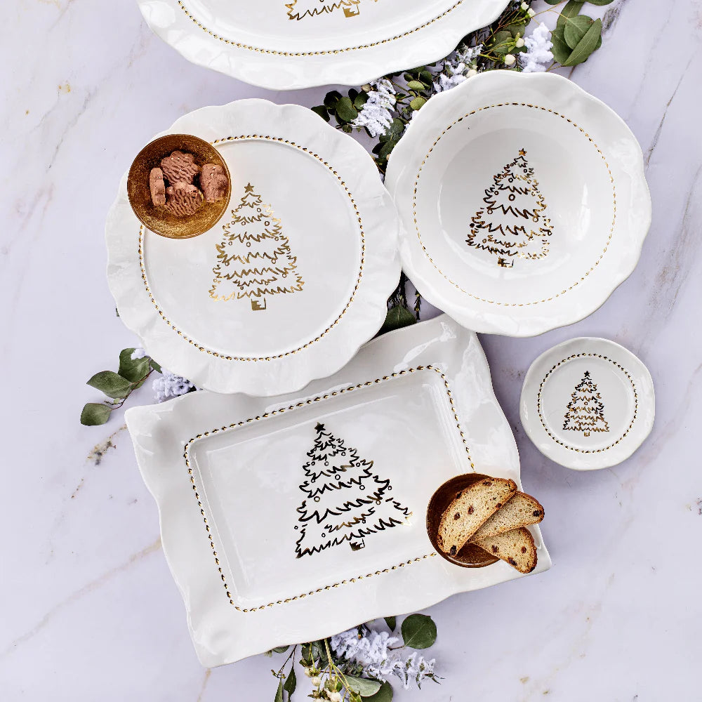 Giorno de Festa translate to a “day of happy events,” and this sophisticated, joyful dinnerware ensures just that. A simple gold tree and wreath adorn each piece, and the result is a timeless sheet collection that you will enjoy every holiday season for decades to come.