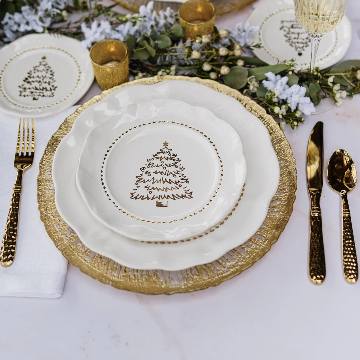 Giorno de Festa translate to a “day of happy events,” and this sophisticated, joyful dinnerware ensures just that. A simple gold tree and wreath adorn each piece, and the result is a timeless sheet collection that you will enjoy every holiday season for decades to come.