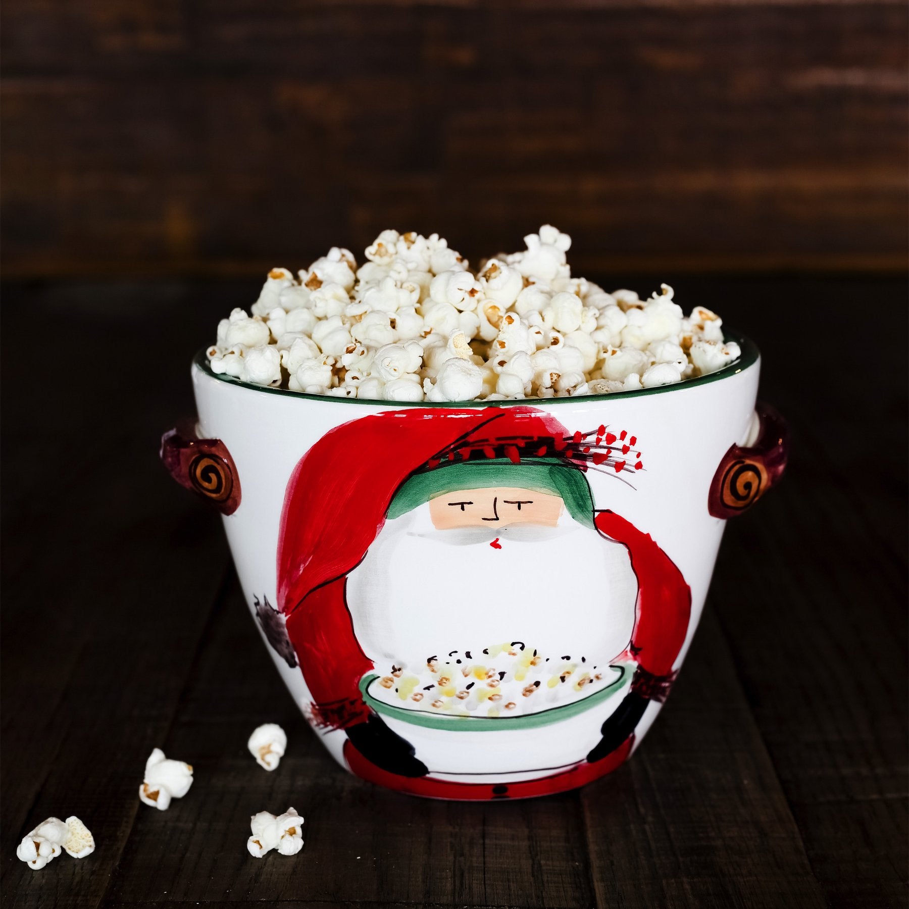 Vietri Old St. Nick Handled Deep Serving Bowl with Popcorn