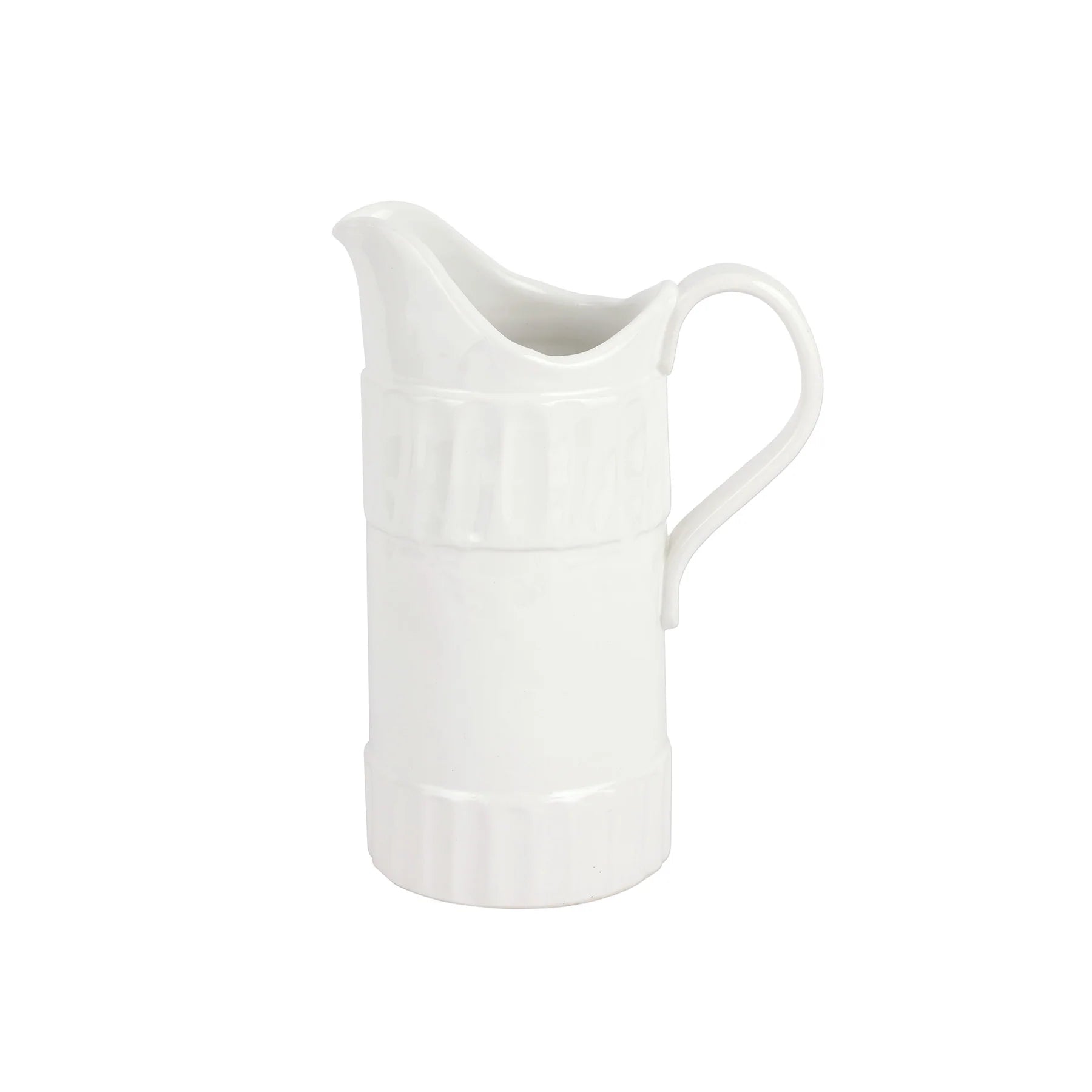Characterized by handpressed edges, Pietra Serena Medium Pitcher takes its inspiration from the architectural details of Florence during the Renaissance. This white collection is a soothing, artistic, and versatile base for any table.